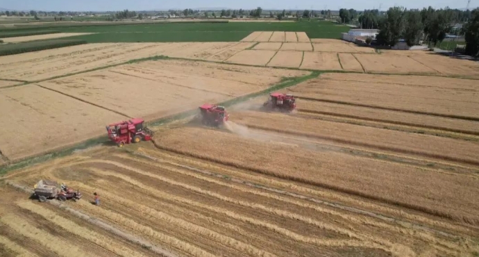 今年以来,永昌县深入实施“藏粮于地、藏粮于技”战略,以农业提质增效、农民增收为核心,积极引导群众抓好粮食生产,稳面积、提产能,有力保证了粮食持续稳产增产和“粮袋子”充足供应,全县完成粮食播种面积72万亩,其中小麦30.7万亩。自7月中旬开始,全县小麦自东向西陆续开镰收割,预计10月中旬全部完成机械化收割作业。