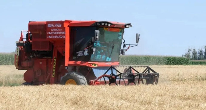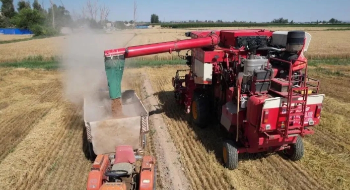 作为永昌县夏粮主产区之一,朱王堡镇的收割进度是永昌县夏收的重要缩影。“今年全镇种植小麦4.1 万亩,不仅超额完成粮食任务,夏收工作也已全面铺开。朱王堡镇根据各村小麦成熟情况,统筹调配社会化服务力量,调配收割机械160余台,确保全镇夏收有序开展。同时,通过微信群、广播等方式发布强降雨预警及灾情信息,帮助群众及时了解天气变化,实时调整收割进度,有序安排晾晒。”朱王堡镇农业中心主任徐发镛介绍。