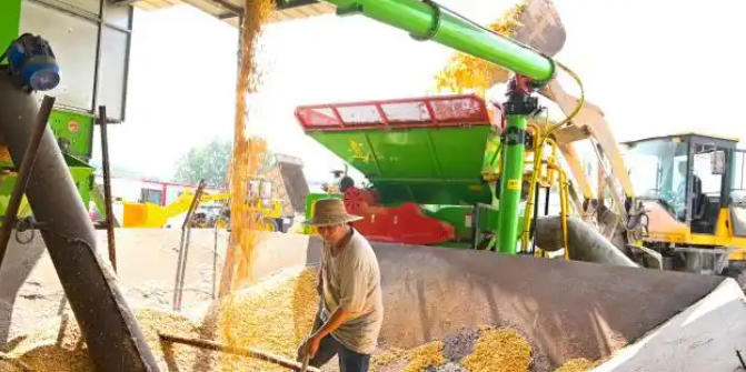 与此同时,在郑山街道官陆村的惠龙农机专业合作社,烘干设备正开足马力运转。合作社负责人王汉纯指着正在脱粒的一堆玉米鲜棒介绍:“这一堆大概25吨,脱粒后筛选、烘干,全程机械化。”他边走边介绍,受连续降雨影响,玉米晾晒难度大,烘干量明显比往年高,“今天是开始烘干的第八天,这几天陆续烘干了近600吨的鲜玉米。农户把玉米送来,过完磅就不用管了,我们全程负责烘干储存,解决了农户雨天晾晒的难题。”