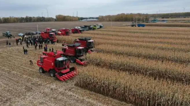 全国各地多个品牌的智能农机齐聚北大荒集团齐齐哈尔分公司齐齐哈尔农场,以玉米、水稻减损收获为“考题”开展测评演示交流活动,来自全国的200余名农业机械化专家和农机工作者来到现场共同观摩评测、交流技术心得。