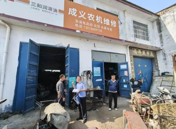 春季是农机使用高峰期,也是农机安全事故易发期。随着旋耕机、播种机、拖拉机等农机具全面投入作业,维修保养频次增加、配件需求上升,农机维修网点与销售门店的安全管理、经营规范直接关系到农机作业安全与农户切身利益。此次专项排查严格依照《农业机械维修管理规定》,坚持“全覆盖、零容忍、严执法、重实效”原则,聚焦关键环节与突出问题,做到不漏一店、不落一项、不留死角。检查重点围绕经营主体技术资格证,严查无证经营、无照经营、假冒盗用农机推广许可证、销售假冒伪劣农机配件等违法违规行为,坚决守住农机质量安全底线。同时,工作人员对各经营场所的用火用电安全、消防设施配备与完好情况、安全通道畅通情况、油料与配件存放规范等进行全面排查,及时消除火灾、触电等安全风险。