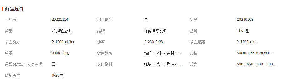 TD75型带式输送机常用于水平运输或倾斜运输,使用非常方便,广泛应用于现代化的各种工业企业中,如:矿山地面运输、露天采矿场及选矿厂中。河南坤威机械可为用户量身定做TD75型带式输送机。