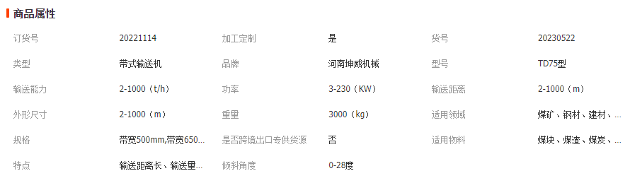 TD75型带式输送机常用于水平运输或倾斜运输,使用非常方便,广泛应用于现代化的各种工业企业中,如:矿山地面运输、露天采矿场及选矿厂中。河南坤威机械可为用户量身定做TD75型带式输送机。