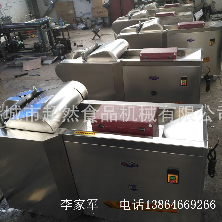 本机采用了间歇无机调节机构、离心式切片机构及往复式移动机构等多种先进技术精制而成,用三级变速适应1-20mm切丝需要。切片装置主要用于硬菜或者鸡鸭各种肉类(冷冻也行)(土豆、罗卜等瓜薯类)的切片,厚度可在1-10mm内自由调整。