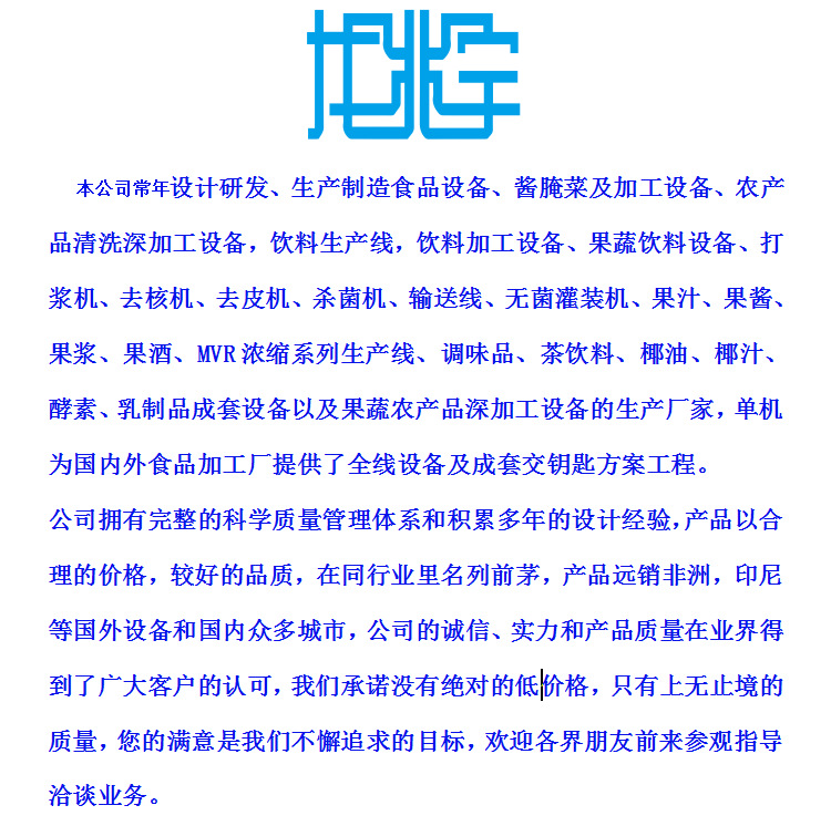 是制造果酒、果酱、饮料等加工企业必不可少的设备之一。