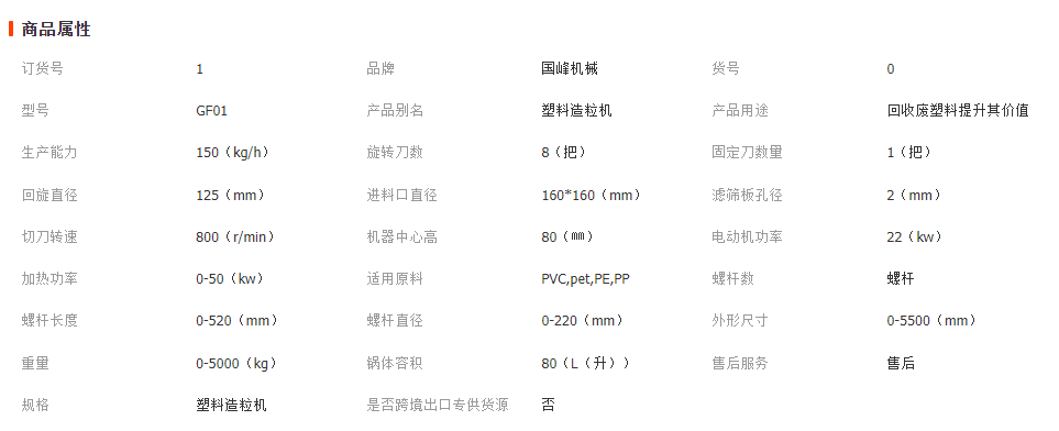主营各种型号:废旧回收塑料造粒机、聚酯(PET)回收生产线、破碎机、切粒机、洗料机、磨刀机、捞料机、塑料机械等十几个系列产品。(诚征各县,市经销商)