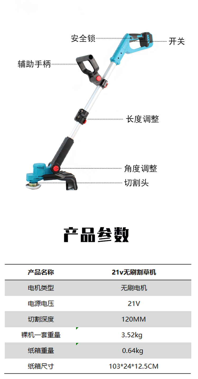 锂电割草机小型多功能家用除草机充电式12V园林修剪草坪机打草机