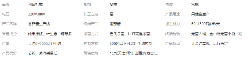 利臻机械 芒果酱生产线 巴氏杀菌 设计合理美观 运行稳定