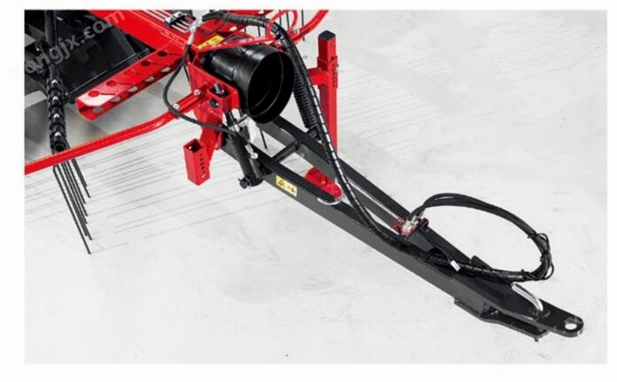 2、搂草机的连接杆和拖拉机的提升链连接在一起,使得机器可以更好的跟随拖拉机,且转弯时角度更小。