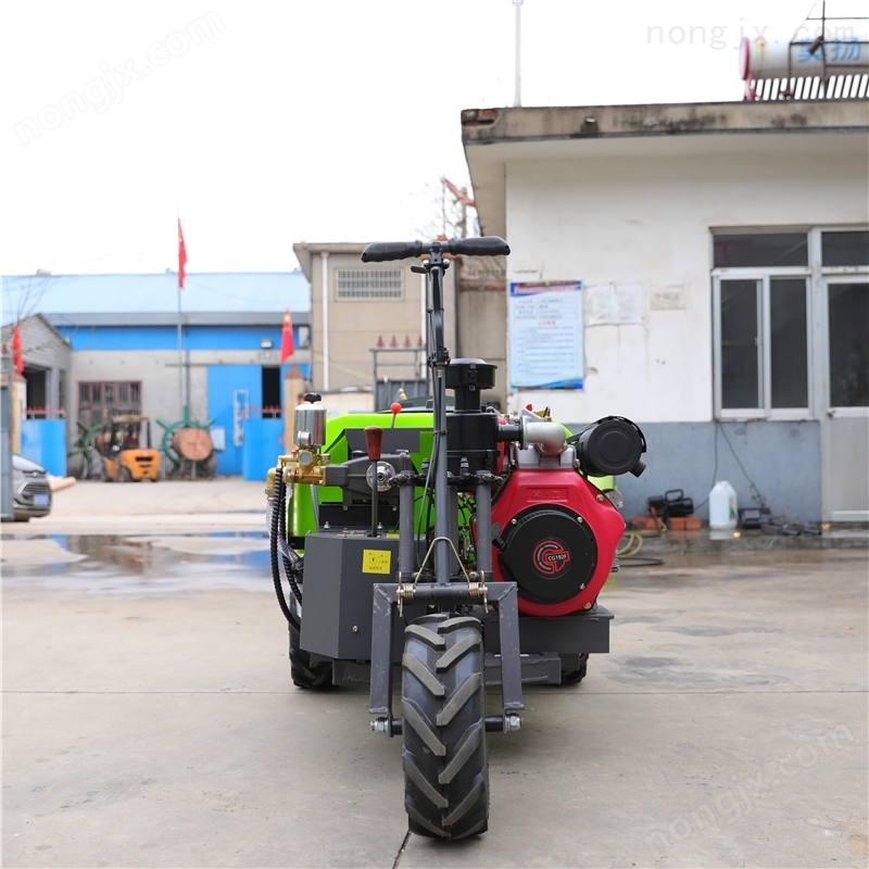 行走喷药一个发动机带动,无需人力牵引,高配置电启动,机器不挑人,男女老少均可操作,大大节省人力成本;