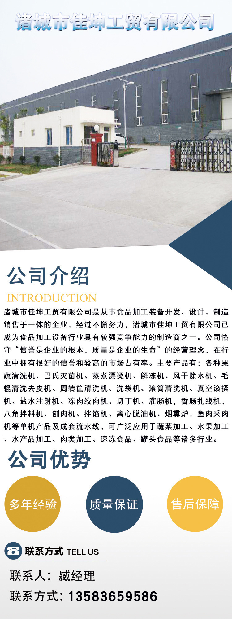 佳坤毛刷清洗机又称辊刷清洗机,适用于胡萝卜、土豆等各种根茎类蔬菜和柑桔类水果以及海鲜肉类物料的分拣清洗,(去皮去泥沙去毛等)采用食品级毛刷输送和清洗,利用旋转刷配高压喷淋,清洗效果好,能 清洗果蔬表面的污渍。去皮清洗机根据果蔬加工需求设计的用于圆形、长形果蔬的刷洗去皮等工作。适用于胡萝卜、白萝卜、土豆、红薯、苹果、桔子、元葱、山药、辣根、生姜等根茎类物料的清洗、去皮。具有清洗有效容积大、效率高,节水,可连续清洗,操作简单,使用寿命长等特点,刷辊材料经特殊工艺处理,经久耐用,耐磨性能好。