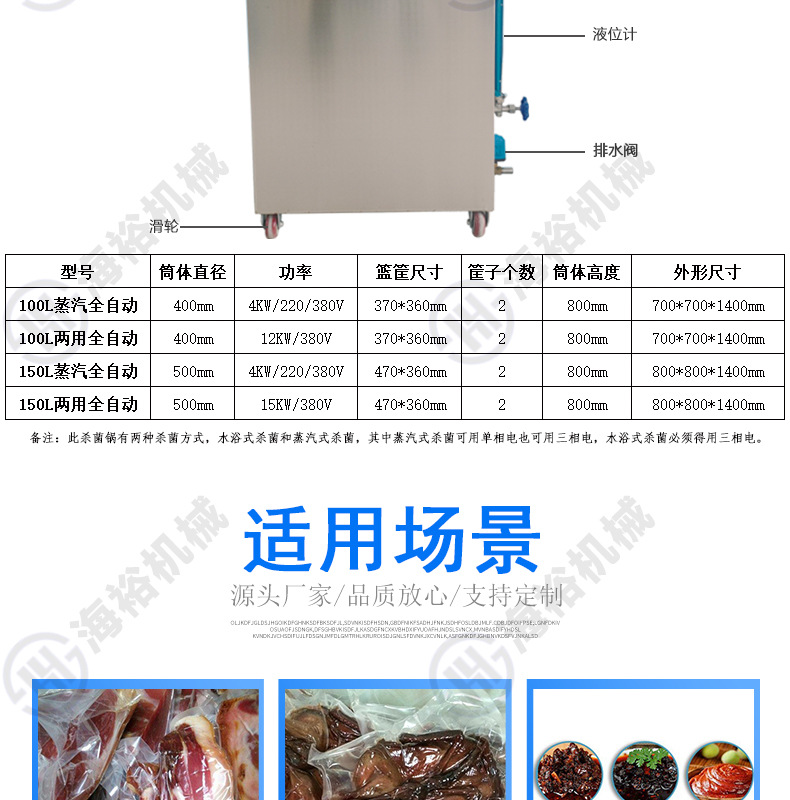 规格定金,100L蒸汽全自动,100L水浴式全自动,150L蒸汽式全自动,150L水浴式全自动
