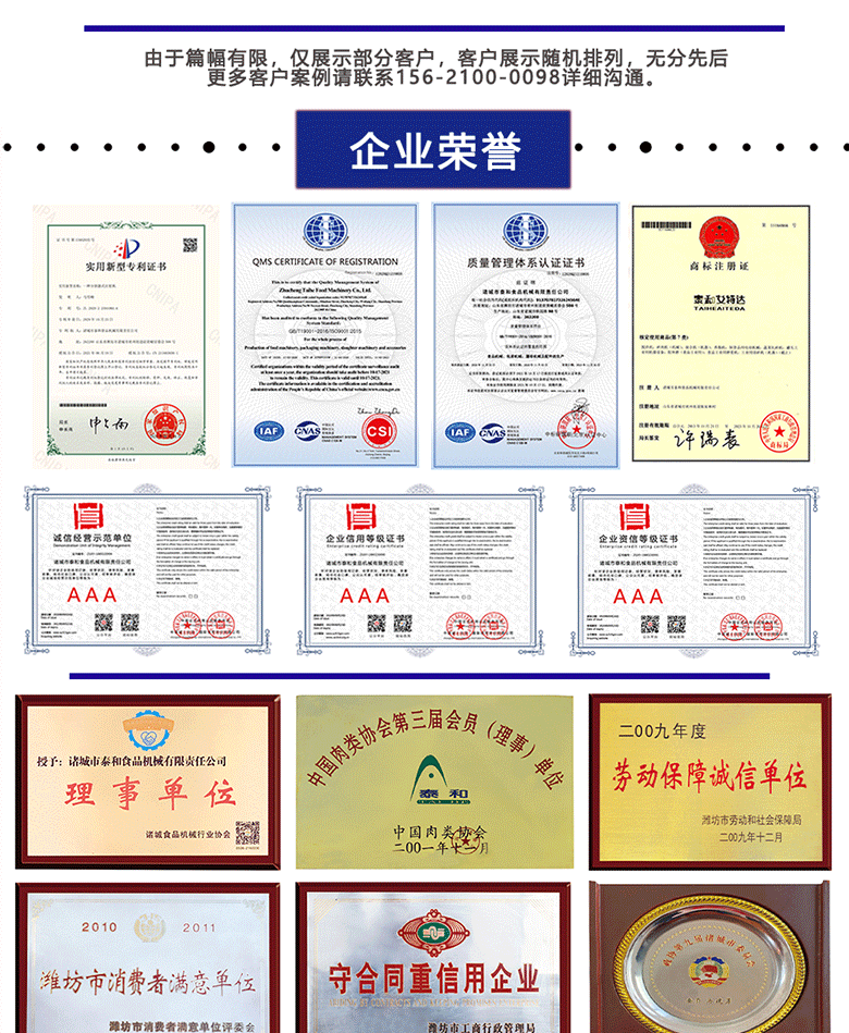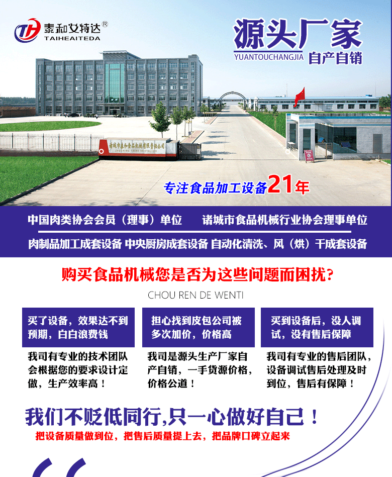 诸城市泰和食品机械有限责任公司于2001年注册,是中国肉类协会会员理事单位,专业从事食品加工机械开发、设计、制造及销售的企业。
