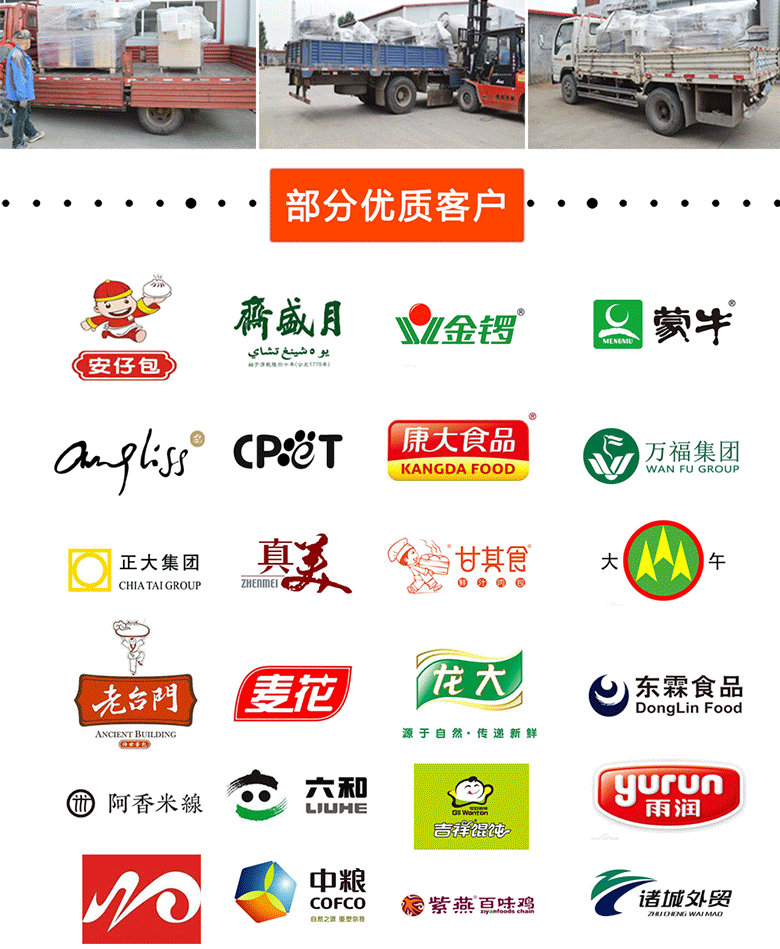 所生产的产品主要有:滚揉机、盐水注射机、烟熏炉、斩拌机、拌馅机、碎骨机、骨泥机、丸子机、丸子成型流水线、液压灌肠机、蔬菜清洗机、软包装风干机等等,可广泛应用于肉制品、水产品、速冻食品、罐头食品、调理食品等诸多行业。