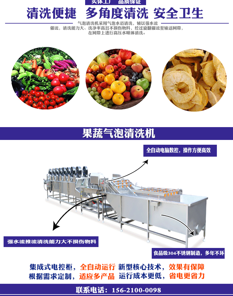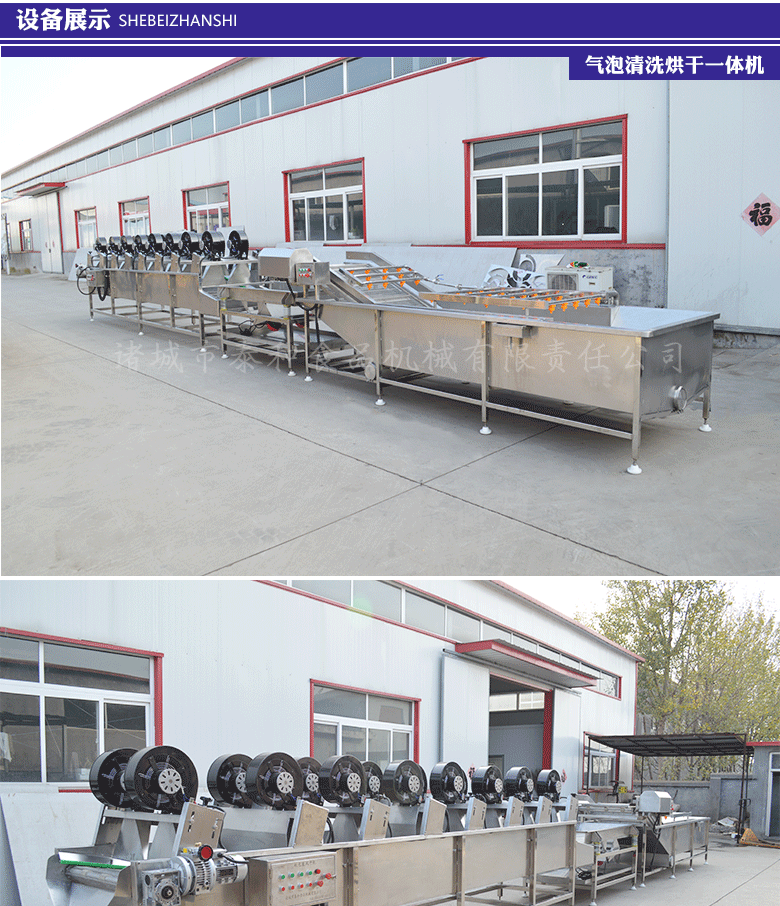 果蔬气泡清洗机主要用于蔬菜、水产、红枣、大枣等根茎类蔬菜的清洗,也可用于胡萝卜、苹果、马铃薯、土豆等产品的清洗,更适合生长在泥土中的果蔬,洗净度高,能保持原有色泽。我公司可根据需求定做清洗去皮去核切片护色杀菌烘干一体机。