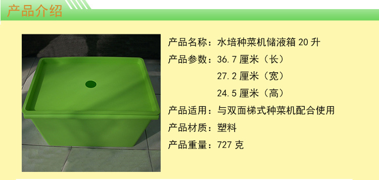 适用于双面梯式水培架,20升储液箱,盖子中间有孔,营养液回流管插入孔里避免营养液外溅。