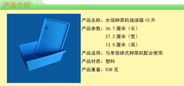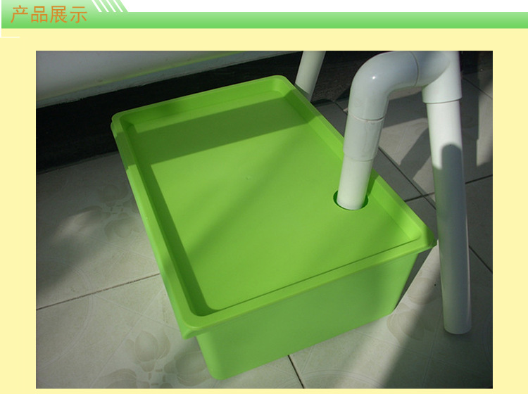 PP材料,用于单面梯水培架储存营养液.盖子上有孔,营养液回流管可以插入,避免营养液外溅。