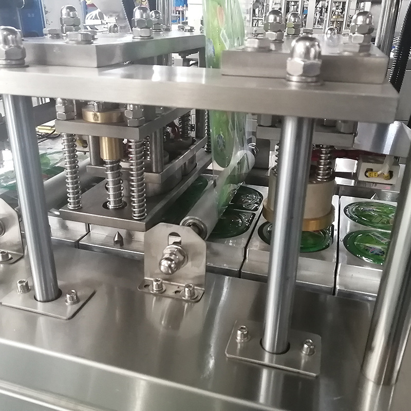 全自动锁鲜餐盒灌装封口机 调料奶茶豆浆米酒一出八灌装封口机