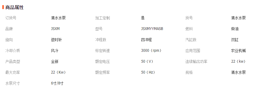 拖拉机30马力22KW PTO 液压马达6寸清水水泵割草机双缸农业机械