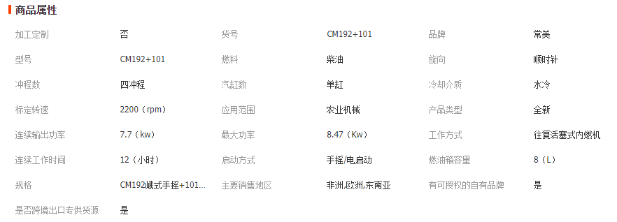 常美农用柴油机11马力峨式水冷风冷柴油机 CM192+101底盘