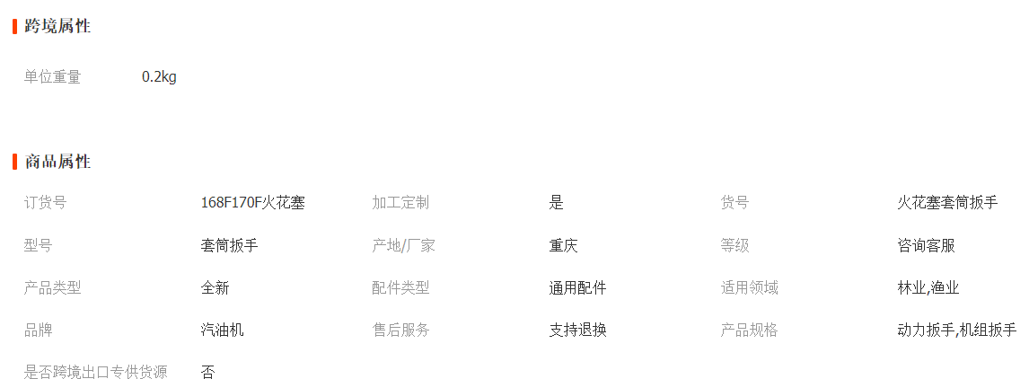 汽油机配件火花塞套筒扳手168F170F发电机2KW5/8千瓦内六角扳手