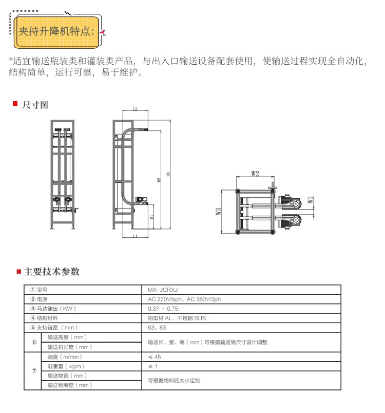 夹瓶机 柔性夹瓶输送机 夹持升降提升机 厂家生产垂直瓶子输送