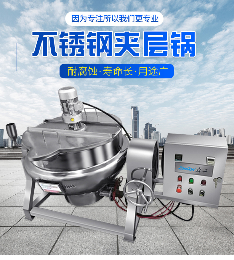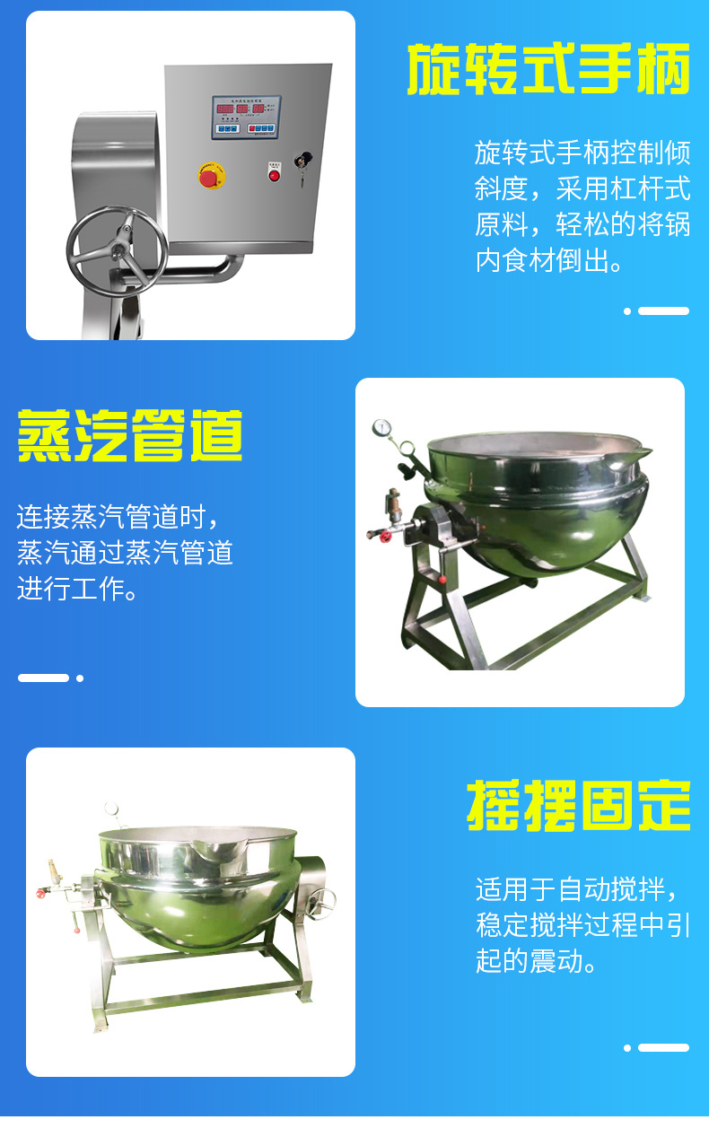 不锈钢可倾斜式夹层锅 全自动蒸汽电加热夹层锅 辣椒酱搅拌炒锅