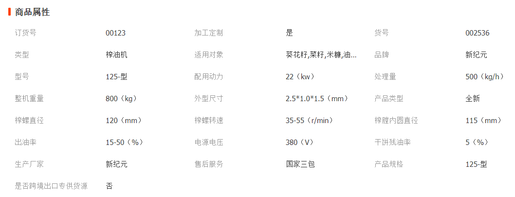 菜籽榨油机参数: