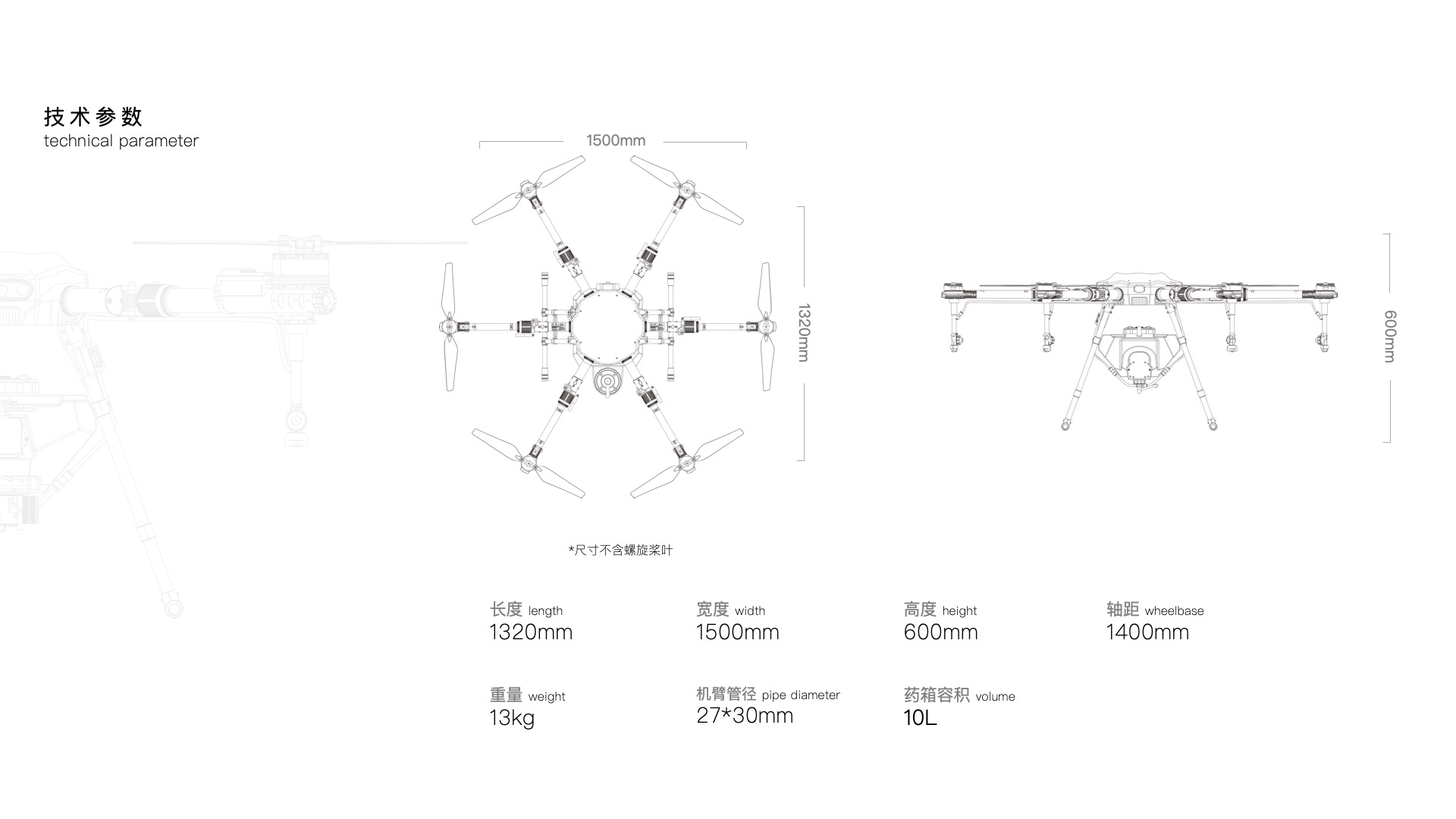 易飞植保无人机 EV610六轴10公斤 10L机架