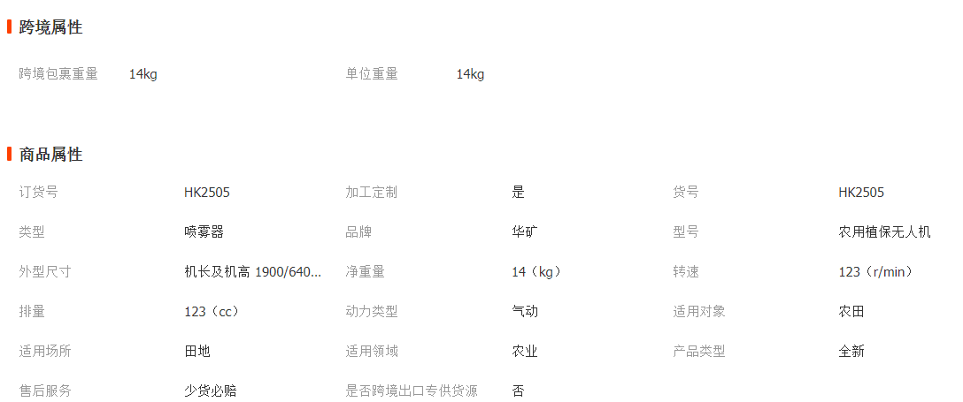 植保无人机产品参数: