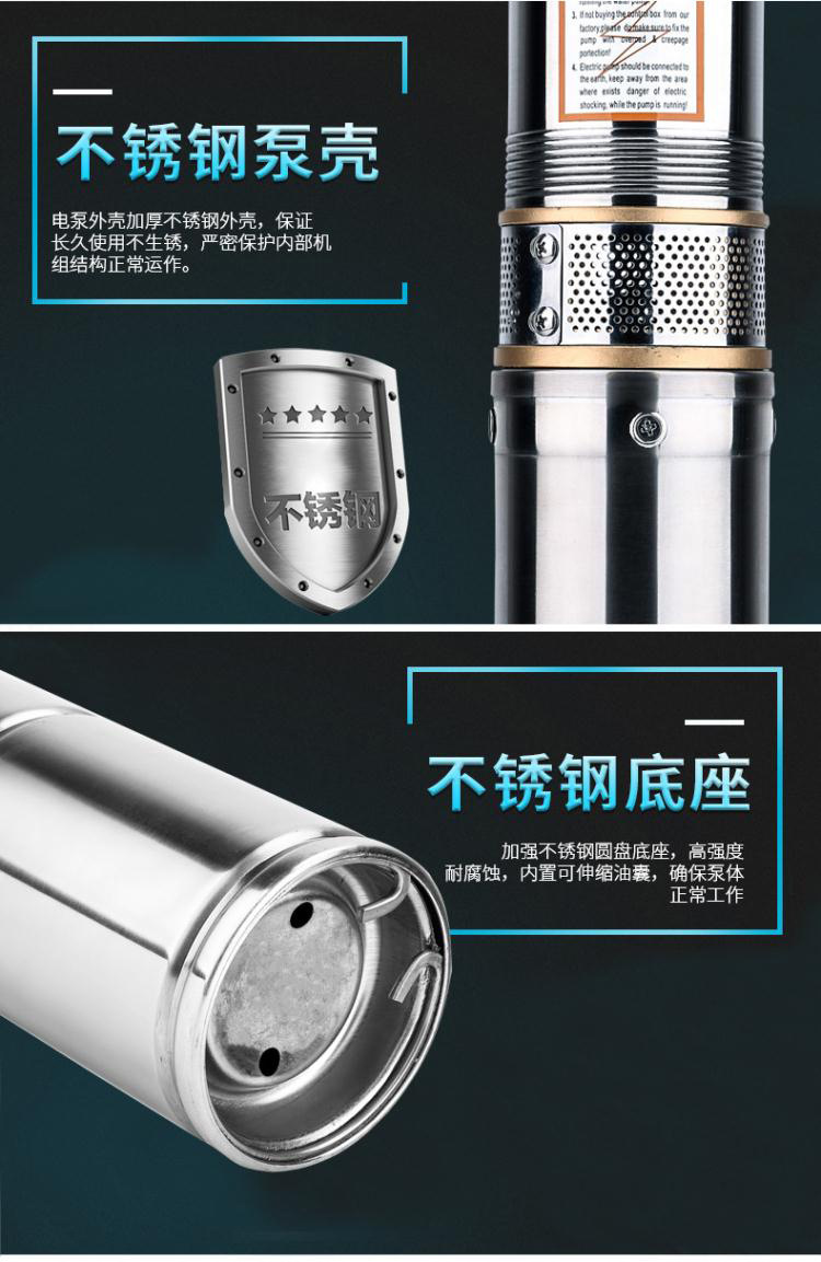 辉腾水泵90型全不锈钢深井泵家用220V抽水农用高扬程抗沙潜水泵