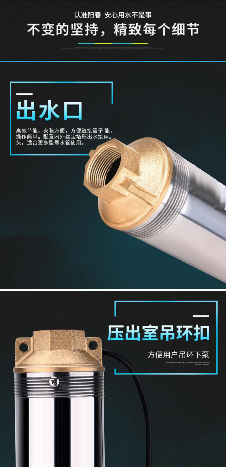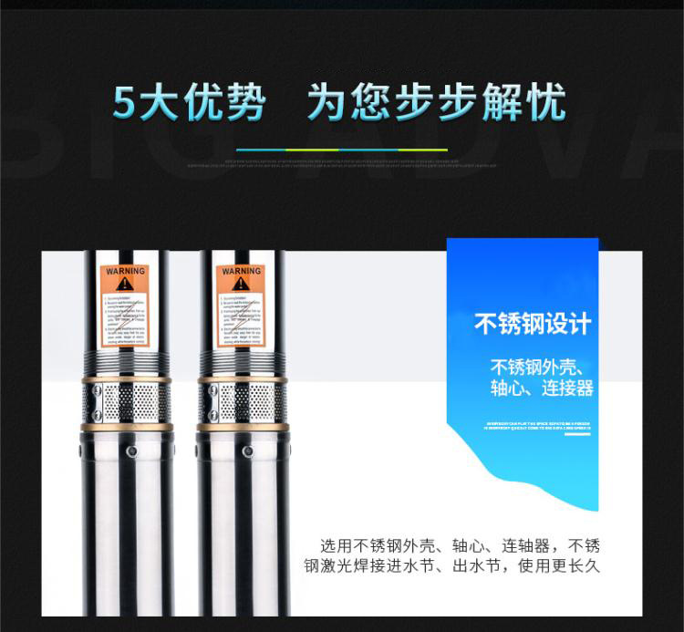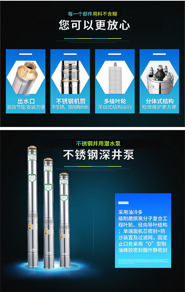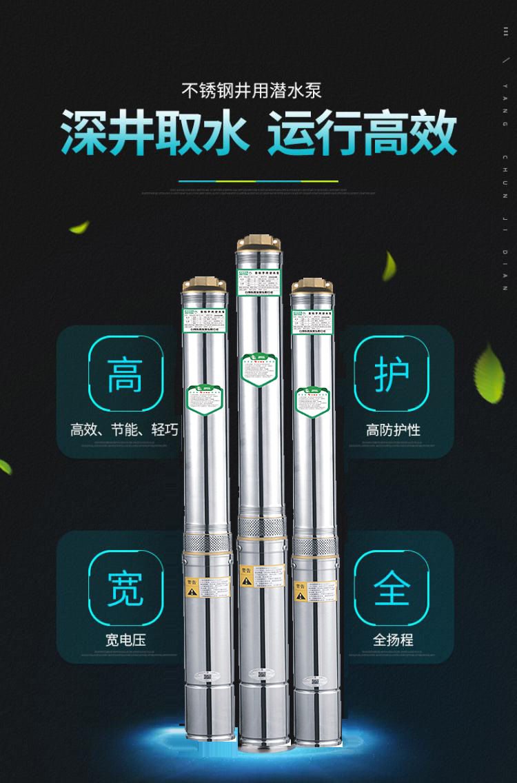 辉腾水泵100型全不锈钢深井泵家用220V抽水农用高扬程抗沙潜水泵