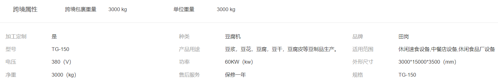 产能:50-60kg/hr(干大豆计算),豆浆300-450Kg/hr,豆腐150-300kg/h.
