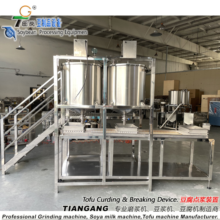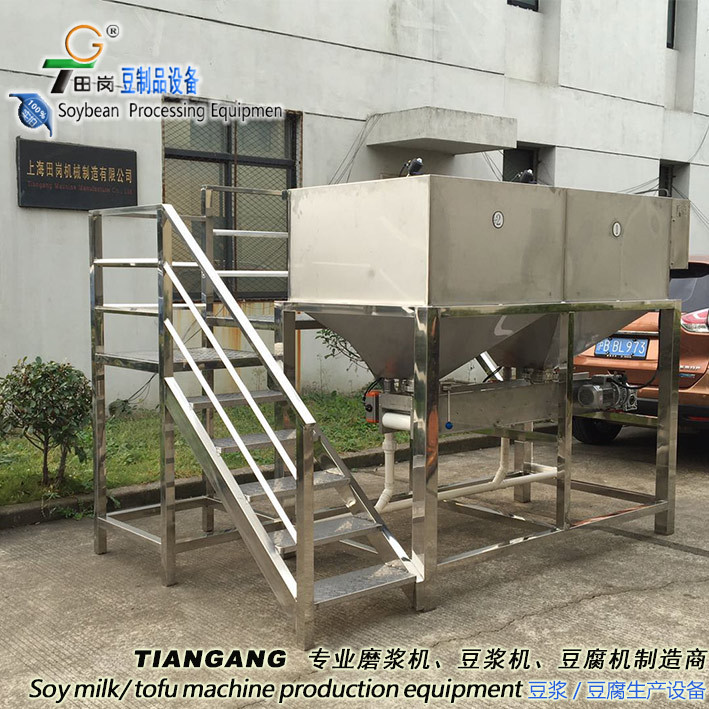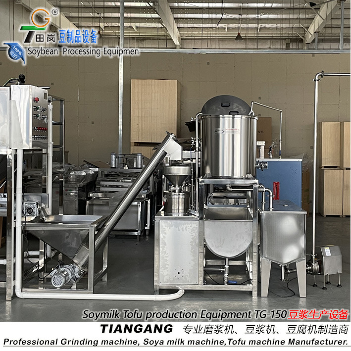 3、TG-150大豆磨浆机机组;浸泡后的大豆经过2次磨浆分离,豆浆泵到煮浆桶加热。