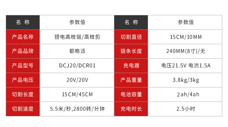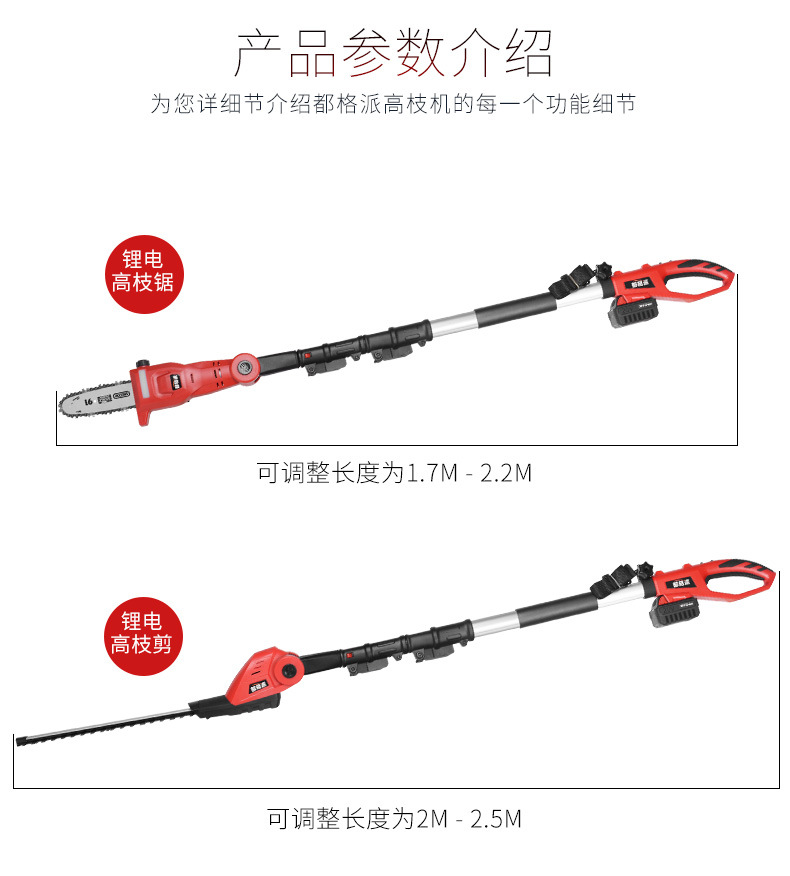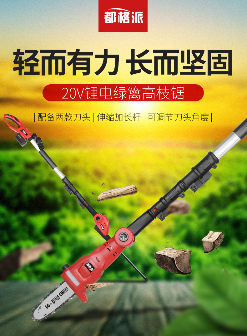 都格派充电式高枝锯高空锯电动高枝剪伸缩高空剪多功能绿篱修剪机