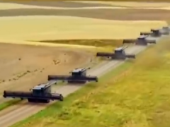 惊艳!大型小麦机收阵列,现代农业机械化!