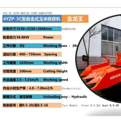 自走式玉米联合收割机,有2行跟3行。2行的分2A和2C。两者带的区别是:2A是前置扒皮,2C的是后置扒皮。前后都是12个扒皮辊,后置的动力大一些 其他没有区别。