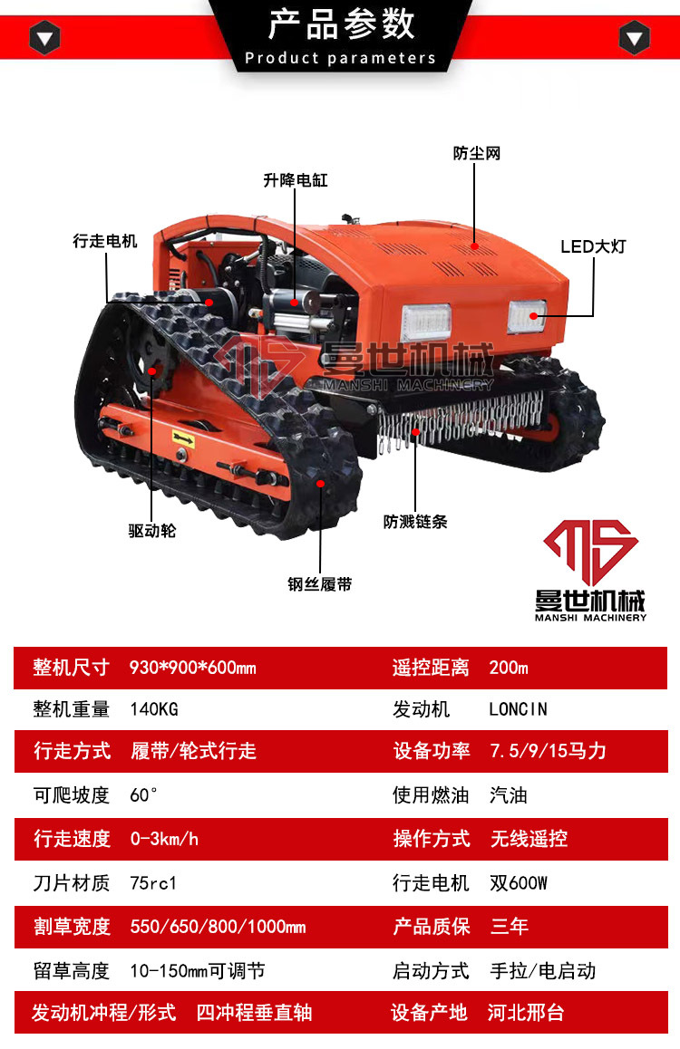 遥控割草机履带式除草机无刷电机四冲程汽油出口型果园草坪打草机