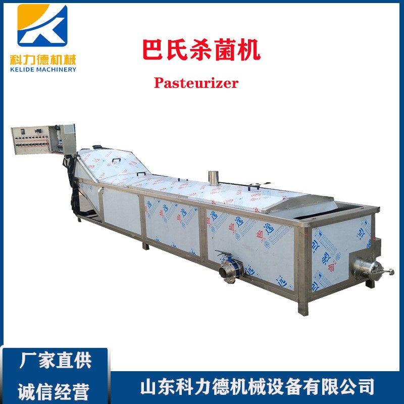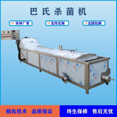 饮料瓶装巴氏杀菌机 水浴式巴氏杀菌流水线 软包巴士杀菌机设备厂家直销是我公司吸收国外先进技术,结合国内食品、饮料、制药等行业的生产工艺需要研制成功的集灭菌、冷却、风干(烘干)与一体的新型产品。该系列杀菌、冷却机采用优质不锈钢制作,先进的控制仪表。有造型美观,操作及维护方便等特点,与目前土法(杀菌池)相比劳动强度低,人力少,自控化程度高,温度可在98度内自动调控,上下层水温差较小,产品质量容易控制,本产品完全符合GMP,HACCP的认证要求,卫生高效,是蔬菜肉禽制品加工行业的理想设备。 在食品、饮料、等行业中,要求对一些包装完毕的产品进行水浴灭菌。被包装好的产品放在可调速的不锈钢网带上,在传送带的作用下按序进人灭菌箱体内,经由“高温水为介质”杀菌后,再由另一条传送带带人冷却箱体内均匀冷却,从而达到产品杀菌要求,后面接着进入连续风干线可直接装箱。该系列设备连续运转,已灭菌的包装产品被源源不断送人下一生产工序。