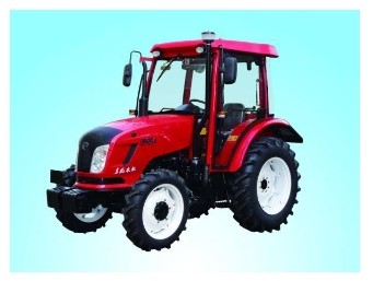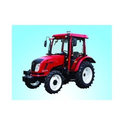 1.发动机生产厂家、型号:一拖(洛阳)动力机械有限公司YTR4105T65,2.12小时标定功率/转速(kW /r/min):48/2300,3.排气污染物排放限值执行标准:GB20891-2007《非道路移动机械用柴油机排气污染物排放限值及测量方法(中国Ⅰ、Ⅱ阶段)》,4变速箱档位数:前进(F) 12 档,倒退(R) 4 档,5.旱田犁耕牵引力(水田不需):22.8 KN,6.驱动轮数:四轮驱动 ,7.差速锁(60马力轮式以上必备):有,8.离合器形式:干式、碟形弹簧压紧、联动操纵双作用,9.换档方式:啮合套换挡,10.动力输出功率kw/转速(kW /r/min)及自身保护装置:,45.3 /540、730/防护罩,11.液压输出:2组,12.液压调节方式:力位综合调节,13.液压悬挂类别(必须三点悬挂):后置Ⅱ类三点悬挂,14.提升力:11 KN,15.转向机构形式:全液压式,16.轮胎或履带型号:前轮8.3-24,后轮14.9-30,17.轮距调节:前轮1420,后轮调节辐板1450。,18.整机结构重量(不加水、油、配重、驾驶室的重量):2430 kg,19.整机不带气泵,带前配重,不带后配重。