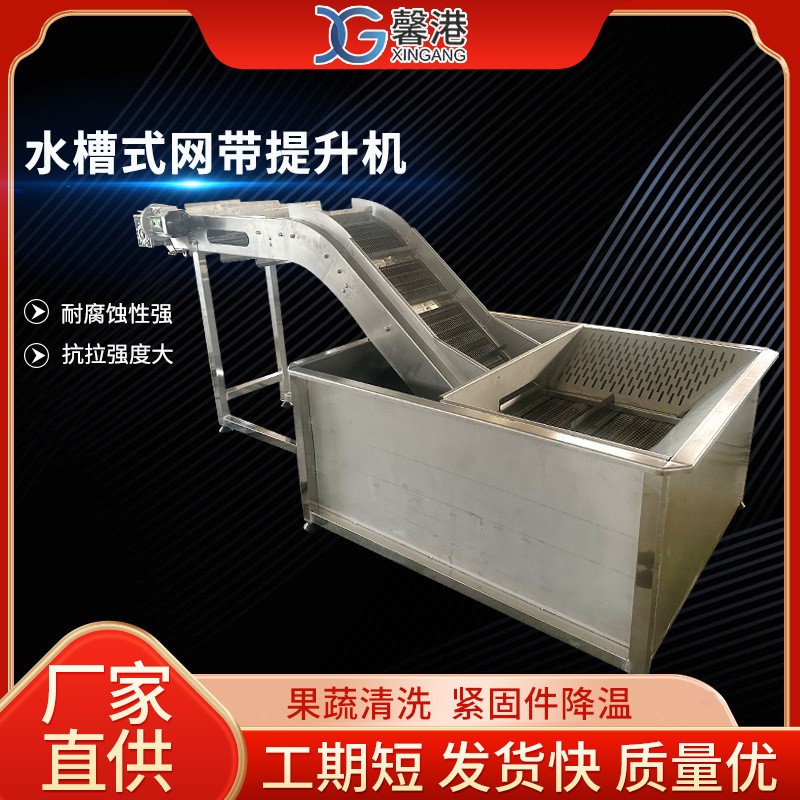 水槽式清洗输送提升机网带输送机304网带传送带水箱清洗机输送机
