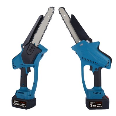 电链锯小型无刷高速8寸家用手持修枝锯充电式伐木锂电锯跨境直供