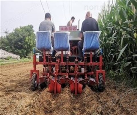 新型药材移栽机用于种植丹参、当归、白芍、红牡丹、射干、党参、牡丹、知母、白术、菊花等药材和不同经济作物。该机用途比较广,行距、株距、栽植深度可调,开沟、栽植、施肥、扶垄、压植一次完成,可在-小时内完成两行8500-9500株、四行18000-19000株苗。具有播种速度快、作业效率高、种植效果好、成活是比较高的、省力、省时的优点。