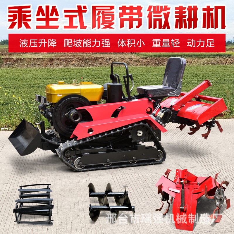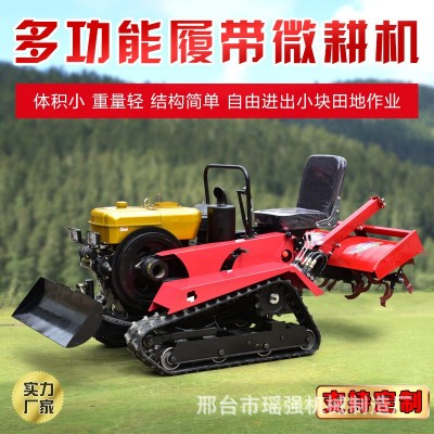 定制履带式微耕机可加装工程铲斗大棚果园旋耕履带式小型微耕机