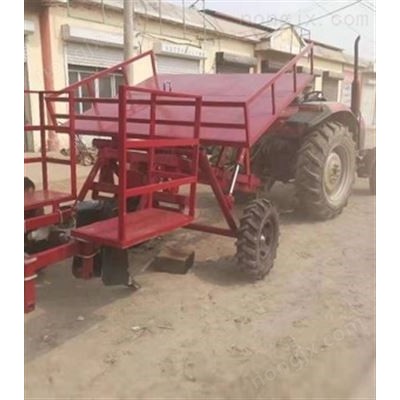工作时,该机由拖拉机牵引拖带,首先由开沟犁对地进行开沟,栽树开沟器在开好的沟中再开出一条栽树的树沟; 由坐在机架座位上的工作人员取下树苗架上的树苗并将其放在开好的栽树沟中; 树苗经呈圆锥形的培土轮进行培土,经轮对所培土进行压实; 后由呈凹形圆盘的覆土轮对新栽的树再覆一定的土,使树苗栽得更牢靠园林植树机械设备自动植树机