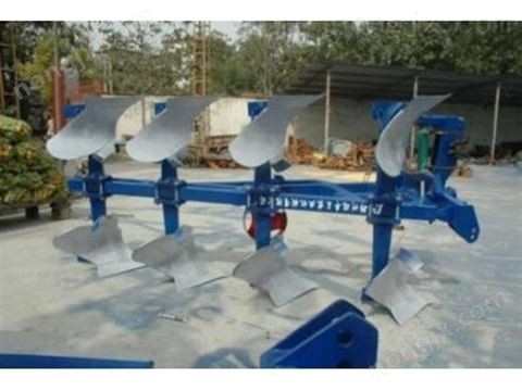 包括悬挂架、翻转油缸、止回机构、地轮机构、犁架和犁体,通过油缸中活塞杆的伸缩带动犁架上的正反向犁体作垂直翻转运动,交替更换到工作位置;地轮是丝杠调节耕深的一轮两用机构。悬挂架与工作主机相连,犁体通过犁柱连在犁架上,犁架上安装有地轮机构,其特征在于所说翻转油缸中缸体与接在犁架上的油缸座相铰接,缸体内有一做伸缩运动的活塞杆,犁架上固定有中心轴,在中心轴外的中心轴套后端与活塞杆铰接,前端穿过并固定在悬挂架横梁上,活塞杆通过与油缸座、犁架连接带动中心轴在中心轴套内做回转运动。