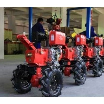 拓普TP168F风冷卧式柴油机(2.2kw)、胶轮一付、旱地刀一付、水田轮一付。主要参数:手拉启动、外形尺寸:1560×900×810、标定转速:3000r/min、幅宽:100CM、生产效率:0.102hm2/(h.m)、耕深:≥8cm