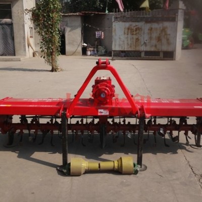 旋耕机齿轮箱采用中间齿轮传动,传动平稳,整体采用框架式结构,受力平衡,整机工作耕幅大于所配套的拖拉机后轮外援,耕后无轮胎压痕,地表平整覆盖严密。