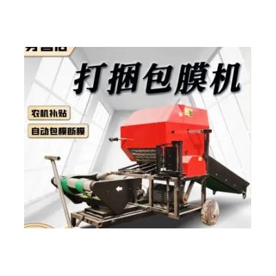 方捆自动套袋饲料压块机 青储秸秆缠膜打捆机 牧场冬储草料打包机