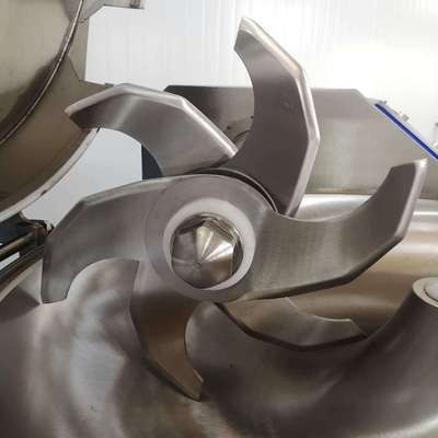 4、主轴经高频淬火精校而成(公差小于0.03mm),在高速运行状态下,运行平稳、无噪音,斩刀与斩拌锅间隙小于1.5mm,确保斩拌效果;